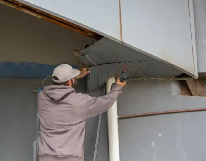 Telhado, beiral e teatro recebem reparos emergenciais na área dos fundos do prédio