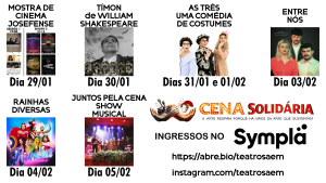 A programação completa e os ingressos para as apresentações do Projeto Cena Solidária estão disponíveis aqui.