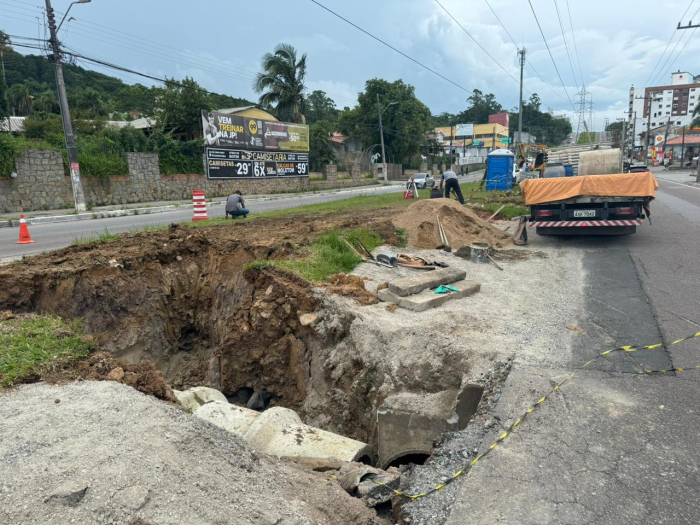 SJ Agora/Divulgação A Secretaria de Infraestrutura de São José iniciou uma intervenção no sistema de drenagem da Avenida Osvaldo José do Amaral, conhecida como Avenida das Torres, em um dos pontos mais afetados por alagamentos durante períodos de chuva intensa.