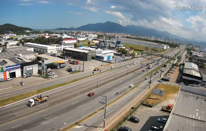 Reprodução/SJ Agora Agora qualquer pessoa pode acompanhar, em tempo real, o movimento da BR-101 no Km 210, trecho entre São José e Palhoça por meio das câmeras de videomonitoramento disponibilizadas pela AEMFLO e CDL-SJ. As imagens estão abertas ao público e permitem visualizar o fluxo de veículos, condições do trânsito e possíveis ocorrências ao longo da rodovia.