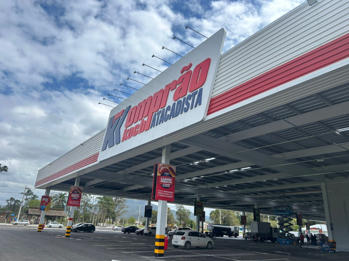 SJ Agora O Komprão Koch Atacadista inaugura nesta sexta-feira (26) sua loja de número 91, localizada rua Antônio Jovita Duarte, no bairro Forquilhas. Esta é a segunda unidade da rede no município. Uma terceira será aberta já no próximo mês, também em Forquilhas. O novo espaço tem 11 mil m² de área construída em um terreno de mais de 18 mil m², com 43 caixas e estacionamento para cerca de 400 veículos, entre carros, motos e bicicletas.
