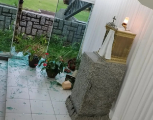 A Paróquia Sagrados Corações, localizada na Rua Pedro Bunn, no bairro Jardim Cidade, em São José, foi alvo de uma tentativa de profanação do Sacrário na madrugada de quinta (2) para sexta-feira (3). De acordo com informações divulgadas pelas redes sociais oficiais da paróquia, apesar da violência, que causou danos a objetos e à estrutura da igreja, os vândalos não conseguiram abrir o Sacrário.