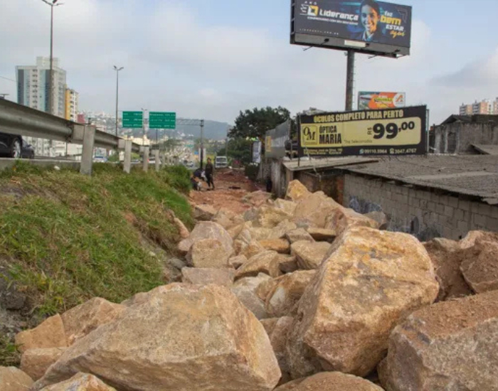 Divulgação O município de São José iniciou nesta segunda-feira (18) a colocação de pedras pontiagudas na marginal da BR-282, no limite com Florianópolis, com o objetivo de impedir ocupações irregulares e queima de fios. Mais de 40 caçambas de pedras serão usadas, além da instalação de nove novos postes de iluminação com LEDs.