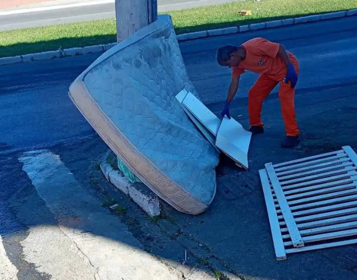 Divulgação Sofás, colchões, armários, fogões e até geladeiras têm virado lixo comum em calçadas e terrenos baldios de São José. Só no primeiro semestre de 2025, mais de 3,2 mil toneladas de resíduos descartados irregularmente foram recolhidas pela força-tarefa do município, o suficiente para lotar mais de 600 caminhões.