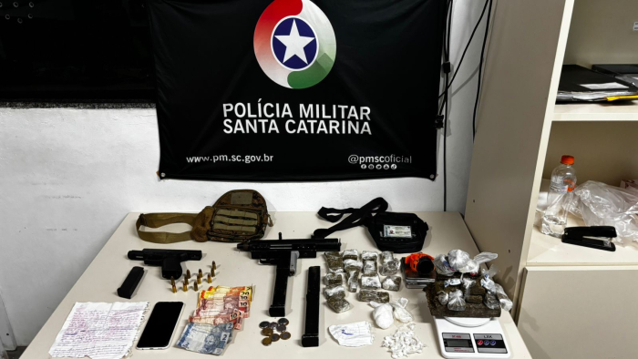 Durante a operação, os policiais apreenderam uma pistola Glock G17, uma submetralhadora Mac-11, cerca de 30 gramas de crack, 1,211 quilo de maconha, 43 gramas de cocaína, 11 munições de calibre 9 milímetros, um telefone celular e R$ 91,35 em dinheiro.