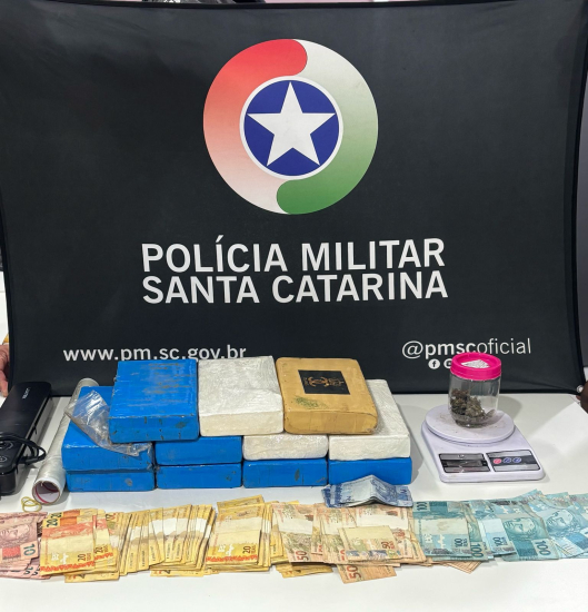 Divulgação/SJ Agora Uma operação do Batalhão de Operações Policiais Especiais (BOPE) em São José resultou na prisão de um homem e na apreensão de mais de 12 quilos de cocaína, 24 gramas de haxixe e R$ 6.999,00 em espécie na tarde de quarta-feira (13). O carregamento está avaliado em mais de R$ 500 mil.
