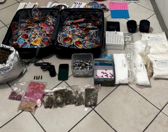 Durante a operação, os policiais apreenderam aproximadamente 2,1 quilos de skunk, 296 gramas de haxixe, cerca de mil comprimidos de ecstasy, 182 gramas de MDMA em pó, mais de um litro de óleo de THC, 167 pacotes de balas tipo gummy com MDMA e 2,4 quilos de balas com THC.