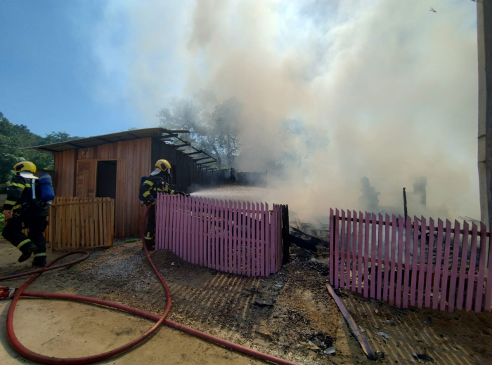 Divulgação No final da manhã desta quarta-feira (13), o Corpo de Bombeiros Militar de Santa Catarina (CBMSC) atendeu a um incêndio em uma residência na rua Avelino Elesbão Mafra, no bairro Potecas, em São José. As equipes constataram que as chamas haviam tomado completamente o imóvel e começado a atingir uma casa vizinha.