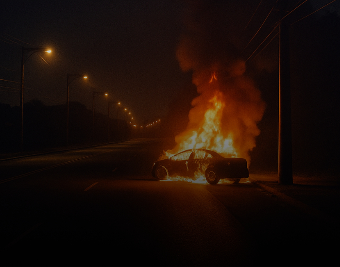 Ilustração Um carro pegou fogo e ficou totalmente destruído após colidir com um poste por volta das 3h da madrugada desta terça-feira (6), na Avenida Osvaldo José do Amaral (Avenida das Torres), no bairro Real Parque, em São José. O acidente ocorreu nas proximidades do CT da Renner.
