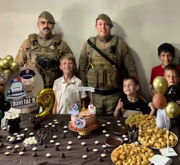 O pedido partiu da família, que entrou em contato com o 7º Batalhão da Polícia Militar. Atendendo à solicitação, os policiais Cb Rocha e Sd Ruppel participaram da festa, interagindo com Davi e os convidados, mostrando equipamentos e reforçando a importância da segurança e do respeito à comunidade.