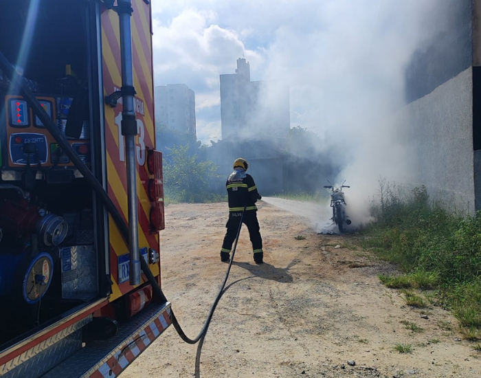 Divulgação/SJ Agora Durante esta tarde de sexta-feira (13), o Corpo de Bombeiros Militar de Santa Catarina (CBMSC) foi acionado para atender a um incêndio em motocicleta na Rua Santa Clara, no bairro Areias.