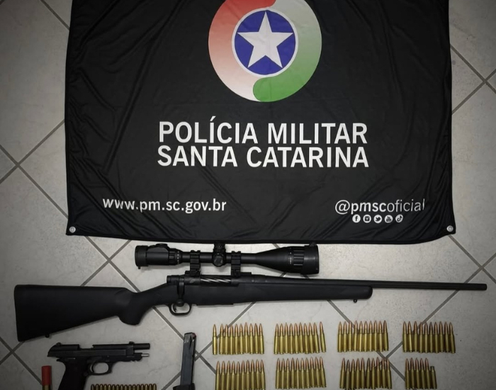 Durante buscas na casa do casal, os policiais encontraram um fuzil calibre 308, uma pistola calibre 380, um carregador com 16 munições de calibre 380, uma bolsa contendo 26 munições de calibre 308, sendo uma deflagrada, e uma munição de calibre 12.