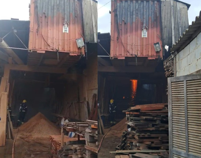 Divulgação Uma madeireira na Área Industrial de São José foi atingida por um incêndio na tarde desta sexta-feira (1º), por volta das 13h50. O Corpo de Bombeiros Militar de Santa Catarina (CBMSC) atuou no combate às chamas, que começaram na parte dos fundos do prédio, em um contêiner utilizado para armazenar serragem.