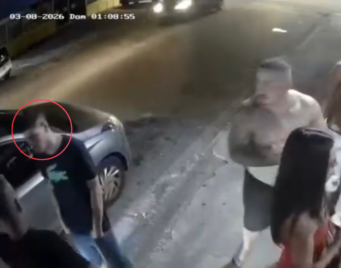Imagens de uma câmera de segurança registraram o momento da violência por volta da 1h09. Nas gravações, um dos suspeitos aparece avançando contra a vítima próximo a um carro estacionado. Logo depois, outros homens se aproximam e também passam a participar das agressões. Após o ataque, o grupo deixa o local caminhando pela rua.