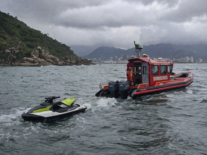 A guarnição foi acionada via Central 193 e realizou o resgate com embarcação especializada. Os ocupantes foram retirados com segurança e levados até a Praia do Estreito, enquanto a motoaquática foi rebocada pela equipe.