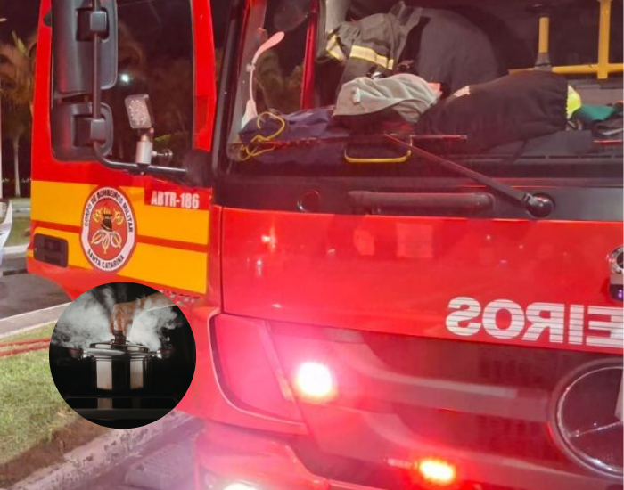 Divulgação O esquecimento de uma panela de pressão no fogão provocou momentos de apreensão na madrugada desta sexta-feira (20) no bairro Kobrasol. A ocorrência, registrada em um apartamento na Avenida Lédio João Martins, mobilizou o Corpo de Bombeiros Militar de Santa Catarina (CBMSC) após a saída intensa de fumaça do imóvel.