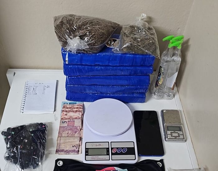 Nas buscas realizadas na localidade, os policiais localizaram aproximadamente 104 gramas de cocaína, cerca de 3,7 quilos de maconha, quatro frascos de lança-perfume, duas balanças de precisão, além de dinheiro em espécie e anotações relacionadas ao tráfico de drogas.