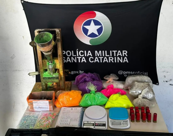 Divulgação Policiais militares do 7º Batalhão de Polícia Militar (BPM) de São José participaram, na tarde desta quinta-feira (10), de uma operação conjunta que resultou na desarticulação de um laboratório clandestino de drogas em Santo Amaro da Imperatriz. A ação contou ainda com apoio do 37º BPM, Agência Central de Inteligência (ACI) e do Batalhão de Operações Especiais (BOPE).
