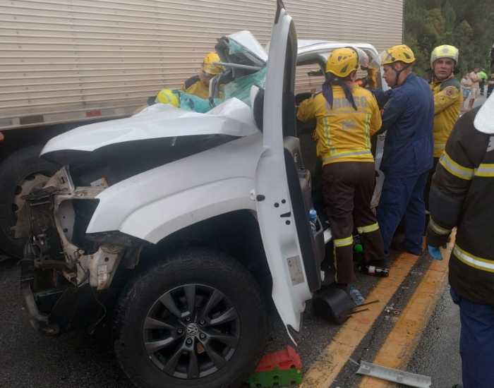 SJ Agora/Divulgação Um grave acidente de trânsito registrado no início da noite desta terça-feira (17), por volta das 18h, deixou três mortos na BR-282, em Rancho Queimado, na Grande Florianópolis. A colisão envolveu uma caminhonete Amarok e um caminhão no km 65 da rodovia, mobilizando equipes do Corpo de Bombeiros Militar de Santa Catarina (CBMSC), do SAMU e da Polícia Rodoviária Federal (PRF).