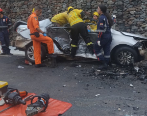 Divulgação/SJ Agora Um grave acidente registrado na tarde deste sábado (14), na BR-282, rodovia que é uma das principais ligações da Grande Florianópolis com São José, terminou em tragédia e mobilizou uma grande força de resgate. A colisão aconteceu por volta das 15h44, nas proximidades do trevo da Varginha, em Santo Amaro da Imperatriz.