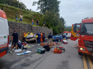 A ocorrência mobilizou grande aparato de emergência. Guarnições do Corpo de Bombeiros Militar realizaram o desencarceramento das vítimas com o uso de equipamentos hidráulicos da viatura ABTR-195. O atendimento contou ainda com quatro ambulâncias do SAMU, incluindo Unidade de Suporte Avançado, além da aeronave Arcanjo e equipes da Polícia Rodoviária Federal.