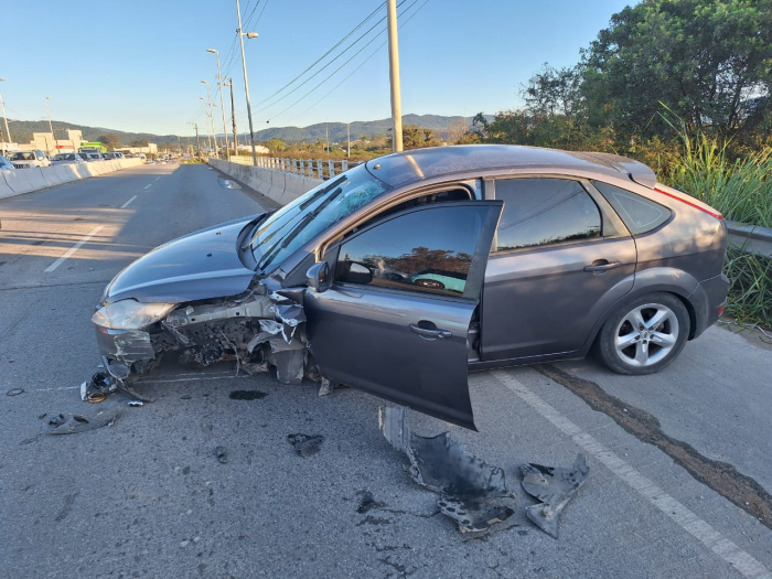 Divulgação Um carro foi encontrado batido e abandonado na manhã desta sexta-feira (18) na SC-281, altura do km 1.300, em São José. O acidente aconteceu por volta das 6h45 e não deixou vítimas. O veículo colidiu contra uma mureta de concreto e permaneceu sobre a faixa da direita até a chegada da Polícia Militar Rodoviária (PMRv).