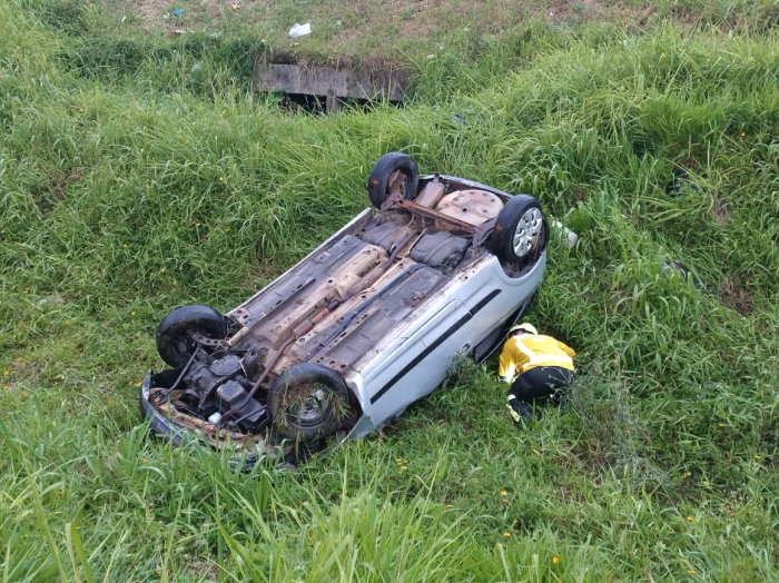 Divulgação/SJ Agora O início da manhã deste domingo (2) foi marcado por um susto na SC-281, em São José. Um veículo de passeio que transportava oito pessoas capotou e caiu às margens da rodovia, na altura do bairro Sertão do Imaruim. O acidente ocorreu por volta das 5h30 e mobilizou uma grande operação de socorro.