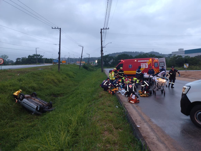 Segundo informações do Corpo de Bombeiros Militar de Santa Catarina (CBMSC), o carro seguia pela rodovia quando o condutor teria perdido o controle da direção, resultando no capotamento. Com o impacto, o automóvel parou fora da pista, em uma área de vegetação.