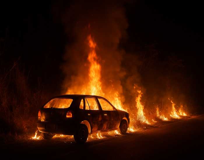 Ilustração/IA No início na madrugada deste domingo (22), um incêndio destruiu um veículo na Rua Araranguá, no bairro Bela Vista, em São José. As chamas também se alastraram para a vegetação próxima, gerando risco de maiores proporções.