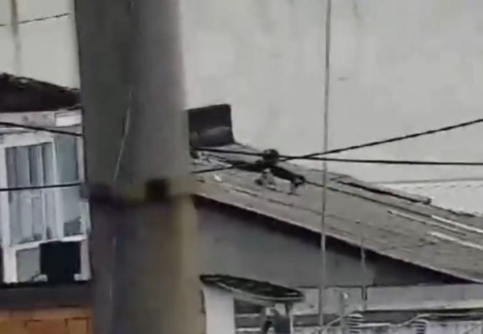 O vídeo divulgado pela corporação mostra o momento em que o suspeito desce do telhado carregando telhas de alumínio furtadas, sendo surpreendido logo em seguida pelos agentes.